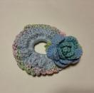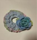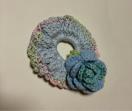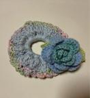 コットン糸とレース系でシュシュを編んで薔薇をひとつのせました。