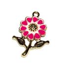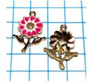554 ピンク色の葉っぱ付きのお花 1個 金属チャーム エナメルパーツ