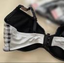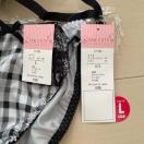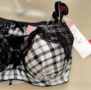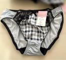 チェック柄のD75ブラジャーとショーツセット、レース素材でスタイリッシュ。