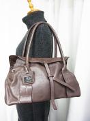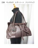 500円スタ★正規 PELLE BORSA(ペレボルサ) レザートートバッグ ハンドバッグ パープルブラウン系 肩掛け可能
