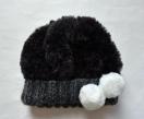 ハンドメイド ニット帽 ふわふわモコモコ ブラック