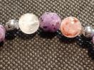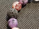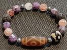 石は魔除けパワーの強い珍しいエジリン入りのチャロアイト、ヒマラヤ産のヘマタイトインクォーツ、テラヘルツ、そして一つこちらも変わった平安十字三眼天珠をお紡ぎです。