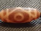 瑪瑙の風合いも少し古い感じではじの部分が過ごし形が違うような部分も。パワーは、強力そうです。珍しい天珠です。魔除けパワーも強いので日々のお守りとしても活躍してくれそうです。