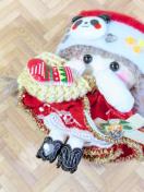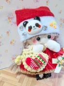 サンタ服を着た女の子ドールです。サンタ帽にパンダデコパーツをつけました。
