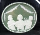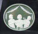 正規ヴィレロイ&ボッホ Villeroy & Boch Mettlach 額入り壁掛けレリーフ装飾 3童子 グリーン系 美品