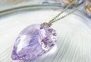 ★ドロップ(涙型/しずく型)のような形状をした大きなヴァイオレット(紫色)のクリスタルが、光を受けて美しくきらめきます。