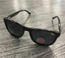 このサングラスは、シンプルでありながら洗練されたブラックのデザインに、レンズに施された特別なマークがアクセントになっています。