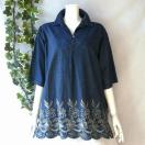 裾に大きな花刺繍が施された、ナチュラル感のあるシャツチュニックです。