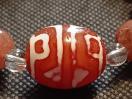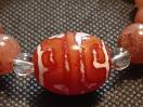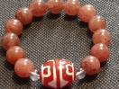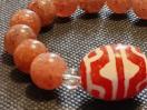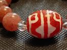 あまり入荷のない、カーネリアン珠に図案が描かれている天珠です。