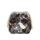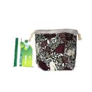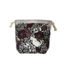 ・底マチ幅を広くとってるので紐を締めるとまるっこくなってかわいいです。底マチと紐通し部分、裏地はベージュ柄をあわせました。