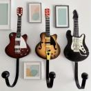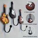 3個セット ヴィンテージ楽器型壁フック - 木製ギター、ベース、バイオリン/ハープ風ハンギングデコレーション - 頑丈な音楽テーマハンガー ホーム、バー、カフェ、ミュージックルーム用 - 簡単取り付け(ネジ不要)、2Dフラット