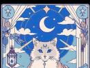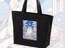 「ETERNAL(永遠)」をテーマに、月と星に見守られる神秘的な猫を描いた、特別なデザインのトートバッグ。