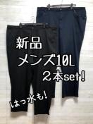 新品☆メンズ10L黒×紺カジュアルパンツ2本セット!はっ水も☆Q534