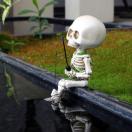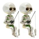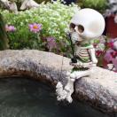 小さな骸骨たちが池のほとりでのんびり釣りを楽しむ、ユニークなミニチュアフィギュア2体セットです。
