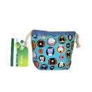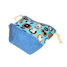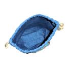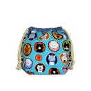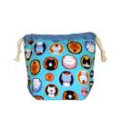 ・底マチ幅を広くとってるので紐を締めるとまるっこくなってかわいいです。底マチと紐通し部分と裏地ネイビーブルー生地をあわせました。