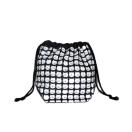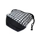 ・底マチ幅を広くとってるので紐を締めるとまるっこくなってかわいいです。底マチと紐通し部分と裏地は黒無地をあわせました。