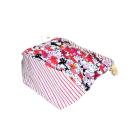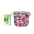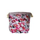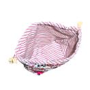 ・底マチ幅を広くとってるので紐を締めるとまるっこくなってかわいいです。底マチと紐通し部分は赤シルバーラメストライプ柄をあわせました。