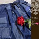 ┗パッチワーク風のデザインが可愛いデニムパンツ