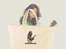 柔らかい印象の生成りトートに、ギターを持つ女の子のグラフィックが映える一品。