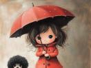 赤い傘、レインコート、レインブーツの可愛い女の子といつも一緒にいる黒いトイプードル二人は雨の日もいつも仲良し締切日時