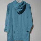 長めの丈、前にポケットあり、カジュアルスタイル。