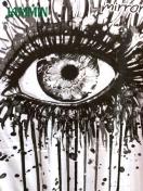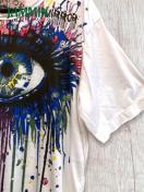 前後に大きな眼のプリント入りTシャツです。