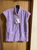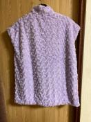 手触り、すべすべです。バラの花が集まっているような、くるんとした模様みたいになっています。毛足は長くないので着て寝て頂いても、ごわごわせずに肩部分おおう幅あるので肩冷え予防になります。(画像5 生地アップ)