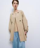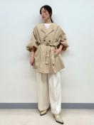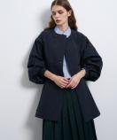 高めのウエスト切り替えとボリューム袖で、レディライクな印象のタフタコート。