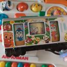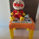 音声機能付きのアンパンマンぬいぐるみとおもちゃテーブルのセット。