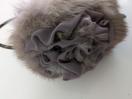 フワフワのリアルラビットファーに、コサージュ?の花が埋め込まれたデザインです。