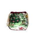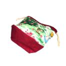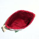 ・底マチ幅を広くとってるので紐を締めるとまるっこくなってかわいいです。底マチと紐通し部分は赤地をあわせました。