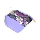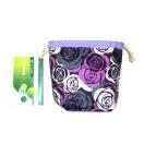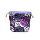 ・底マチ幅を広くとってるので紐を締めるとまるっこくなってかわいいです。底マチと紐通し部分は薄い紫をあわせました。