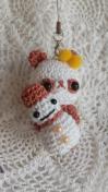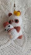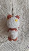 レース糸で編んだ雪だるま抱えたカラフルぱんだです。