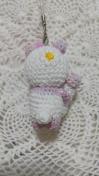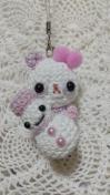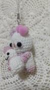 レース糸で編んだ雪だるま抱えたカラフルぱんだです。