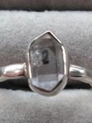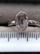 中古。ハーキマーダイヤモンドのような両剣水晶のリングです。黒い内包物あります。水晶は内包物があると、この分パワーが強くなるそうです。