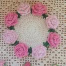 ★アクリル毛糸で編んだ、薔薇のコースター2枚組です。少し大きめです。