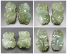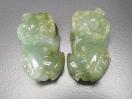 良質本翡翠ジェダイト如意ヒキュウ彫りペア