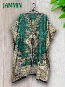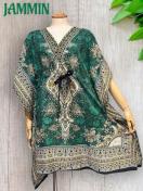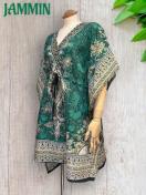 ざっくりした造りで、可愛いシルエットのアジアンペーズリー柄ポンチョ風トップスです。