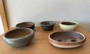 多様な形状と色合いの陶器製植木鉢5個セット。