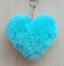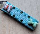 メンバーカラーをモチーフにイメージして作った、ビーズキーホルダー、ネコ、ドットリボンのデコパーツがのったネームタグ、ファーハートキーホルダー(リングからのサイズ…縦12cm×横9cm)付きとなります