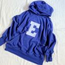 フロントにEのアルファベットロゴプリント入のフードスウェットプルオーバーです*・゜