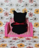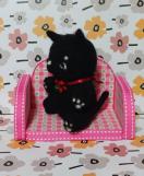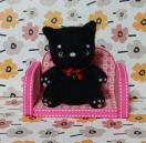 黒い猫のフェルトぬいぐるみとミニソファのセット。