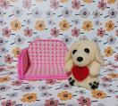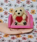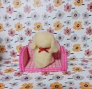 クリーム色ダックスちゃんハートイニシャル希望あれば入れます。可愛らしいソファに座っています。