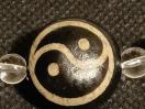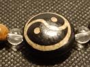珍しい丸型タイプで腕にフィットすると思います。黒瑪瑙に太極図案が焼き付けされたレアな天珠。太極図案は、パワーも強力だと最近個人的に思う事柄もあり興味深い天珠です。