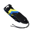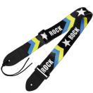 黒色と黄色と青色のカラーに、ROCKと星のマークのデザインで、かっこいいストラップです。