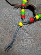 20数年ほど前に原宿都のインディアンジュエリーショップにてラスタカラーに組んで頂いたビーズブレスレットになります。