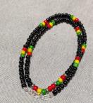 20数年ほど前に原宿都のインディアンジュエリーショップにてラスタカラーに組んで頂いたビーズネックレス(チョーカー)になります。