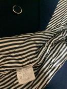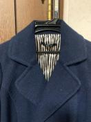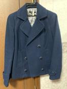 ウール混合のネイビーのダブルブレストピーコート、カジュアルスタイルに最適。