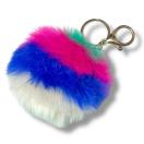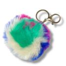ショッキングピンク,エメラルドグリーン,ブルー,オフホワイトのカラフルなマルチカラーのマーブルデザインが可愛いコロン♪としたエコファーポンポンチャーム