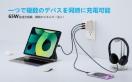 【多機能デザインで、充電の心配ゼロ】革新的なデザインの充電器は、2つのType-Cポートと1つのUSB-Aポートを搭載し、様々なデバイスに対応しています。各ポートは独立して利用可能で、65Wの高速充電とデータ転送をサポートしています。全ポートを同時に利用することも可能で、合計最大65Wの出力となります。